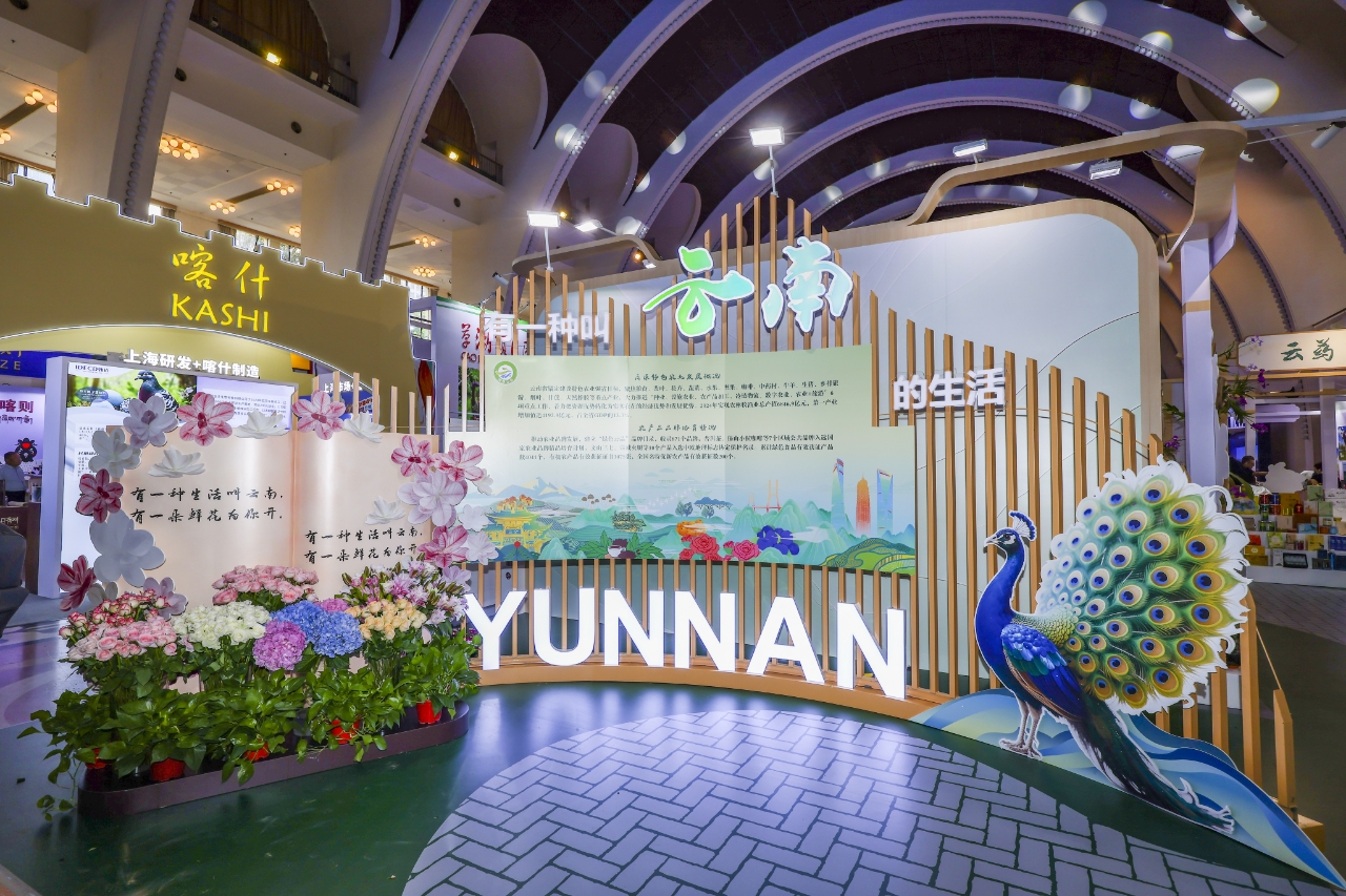 序馆的对口工作成果展示区采用“实景化+沉浸式”布展,生动呈现“上海企业+当地资源”“上海研发+当地制造”“上海市场+当地产品”“上海总部+当地基地”的协作模式,市民漫步其中,能直观感受沪滇等地在产业、消费、人才领域的深度合作。中央大厅特设16个特装展位,云南“绿色云品”——云果、云咖、云茶、云花等标志性商品与其他地区文旅资源集中亮相,视觉与体验感双重升级。
