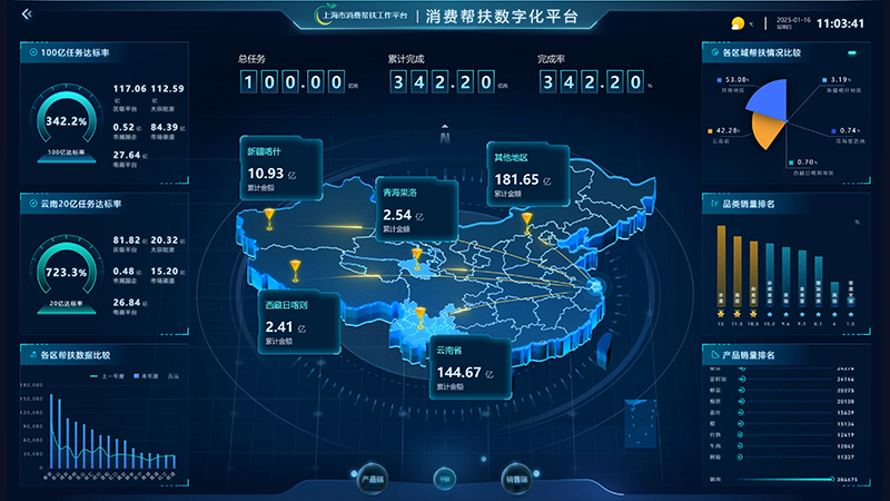 品控是平台的“生命线”。闵月华强调,平台依托光明食品集团、蔬菜集团的国企资源,有自己的仓库、供应链和专业团队,“产品质量专员、采购专员全程把关,合作3年以上的企业还能实现产地直运,售后‘坏一赔一’,用国企品牌背书,让市民买得放心。”此外,全国首个省级消费帮扶数据采集分析系统也已上线,“能分析哪些产品卖得好、在哪些渠道卖得好,让数据反哺生产,精准助力乡村振兴。”