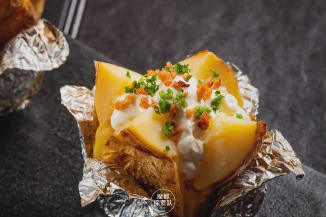 而一顿完美的牛排盛宴,自然少不了与之相得益彰的缤纷小食,焗土豆便是不可错过的点睛之笔。金黄焦香的外壳下保持着绵密柔软的质感,趁热切开,瞬间奶香四溢,酱汁轻盈地包裹着每一颗土豆粒。搭配牛排,黑胡椒的微微辛香,恰到好处地平衡了浓郁的奶香,既丰富了口感层次,更完美衬托出牛排的醇厚本味。