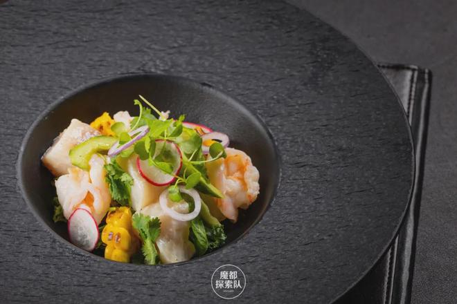 秘鲁经典菜肴「柑橘腌海鲜」,严选肥美的鲜嫩鰤鱼与Q弹大虾,将其浸润于柑橘汁中慢腌,入口先是柑橘特有的明亮酸爽,随即鰤鱼的丰润脂香与虾肉的弹牙甘甜在舌尖渐次绽放,形成层次分明的口感,带你一口品尝到南美海岸的奔放与热情。