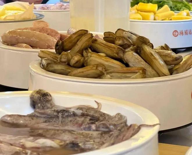 荤菜包含毛肚、牛肉、羊肉、牛百叶等;海鲜涵盖蛏子、海螺、鱿鱼、蛤蜊、扇贝等;小吃甜品则有蛋挞、茴香小油条、鸡米花、鸡柳、冰激凌等。