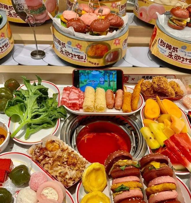 与市场上一人食的旋转小火锅类似。在一人一锅的基础上,加入回转自助的点餐模式。工作人员会把菜品放在传送带上,顾客可根据自己的需求和口味拿取直接涮到面前小火锅中。